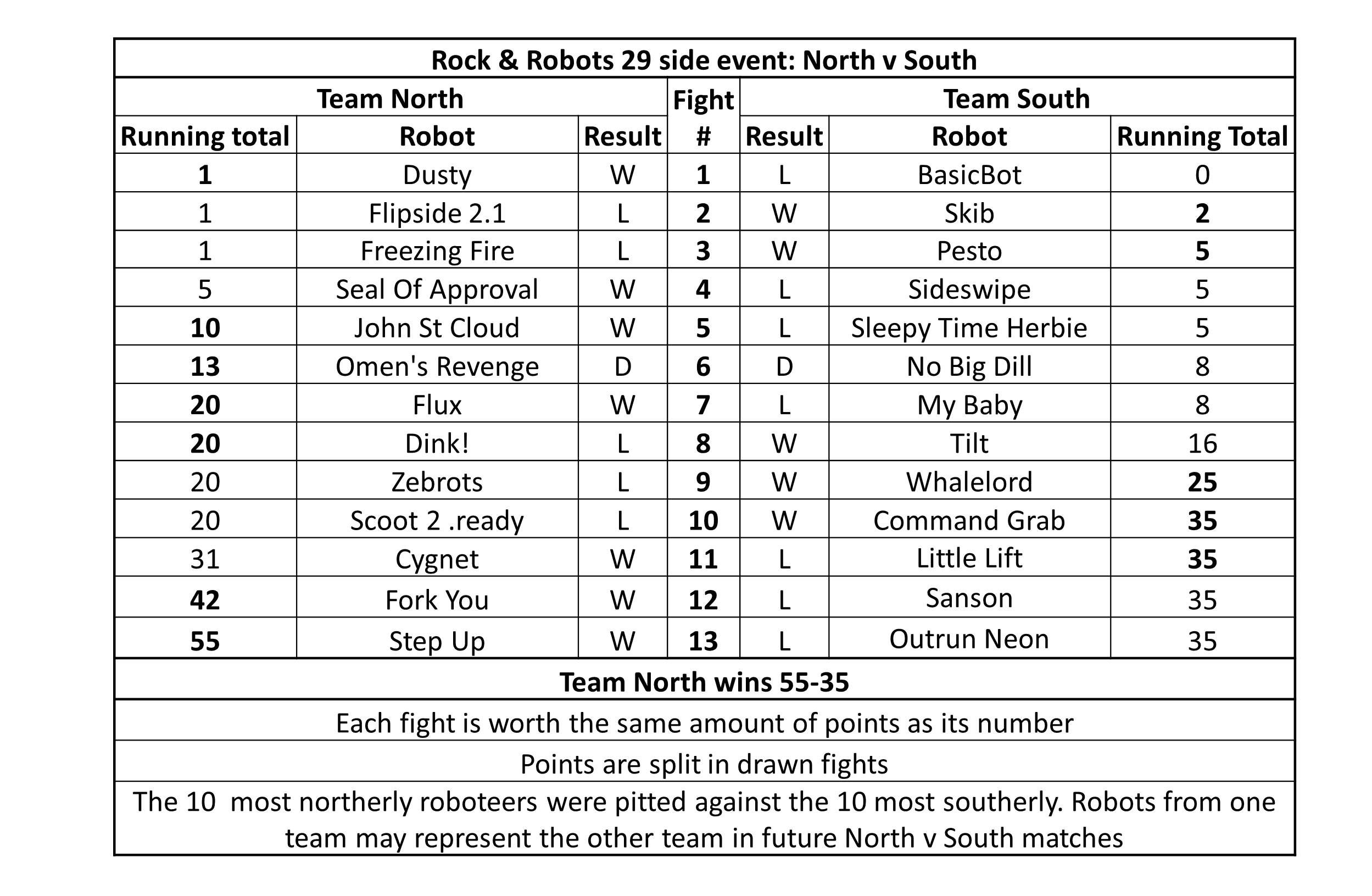29 | North v South | 08/03/2026 | Team North Alex L, Alex R, Eli, Frazer, Kearan, Luke, Neil M, Simon C, Simon D, Simon H, Sleepy, Theo, Tim | Team South Alex S, Ben, Charlie H, Daryl, Hollis, Leo, Lucinda, Marina, Mike, Neil M, Raphael, Vlad, Xavier | video | |