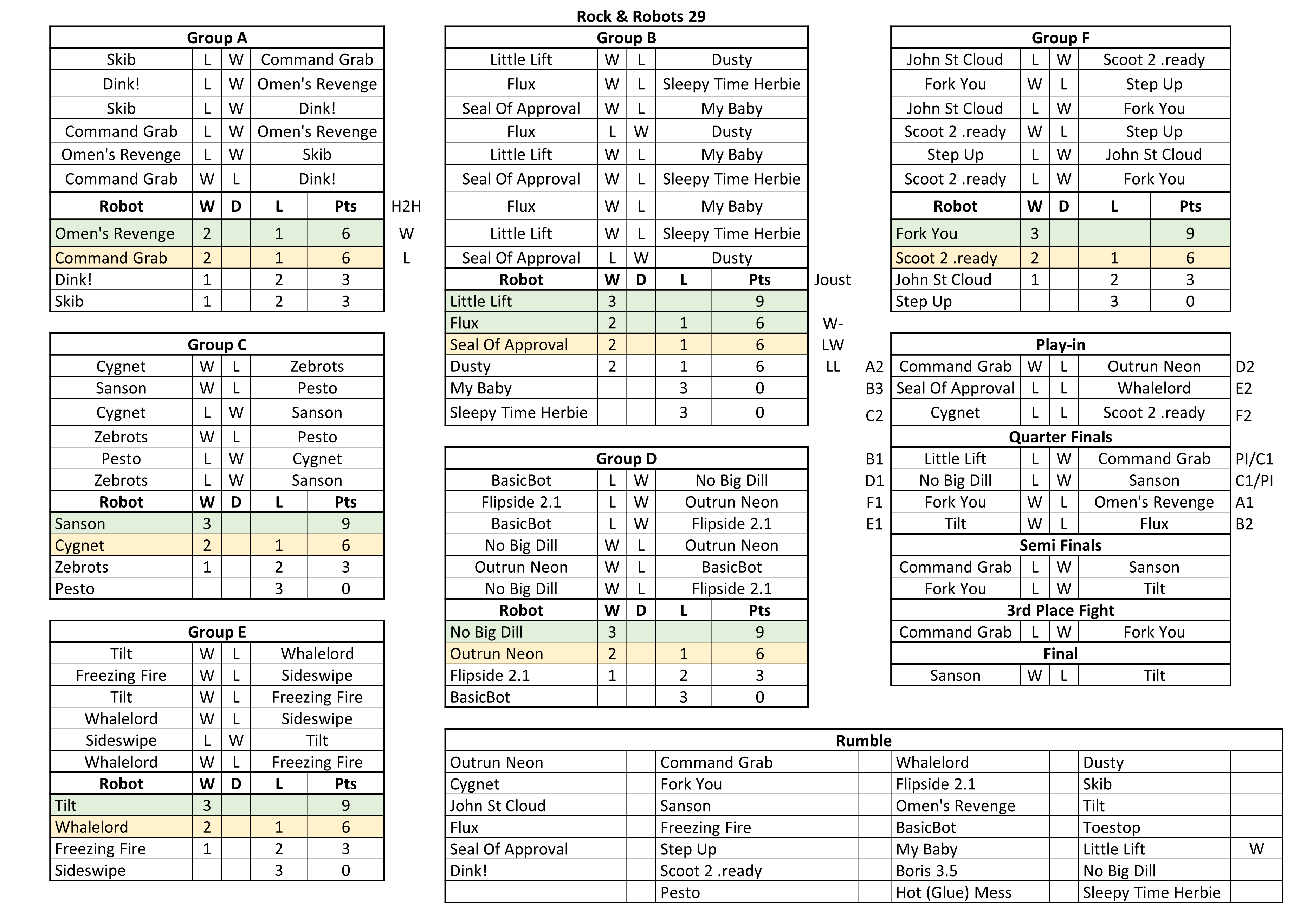 29 | 08/03/2026 | 26 | Sanson Vlad Baluta | Tilt Mike Stevens | Fork You Luke Badgery | Little Lift Xavier Stevens | video | ||