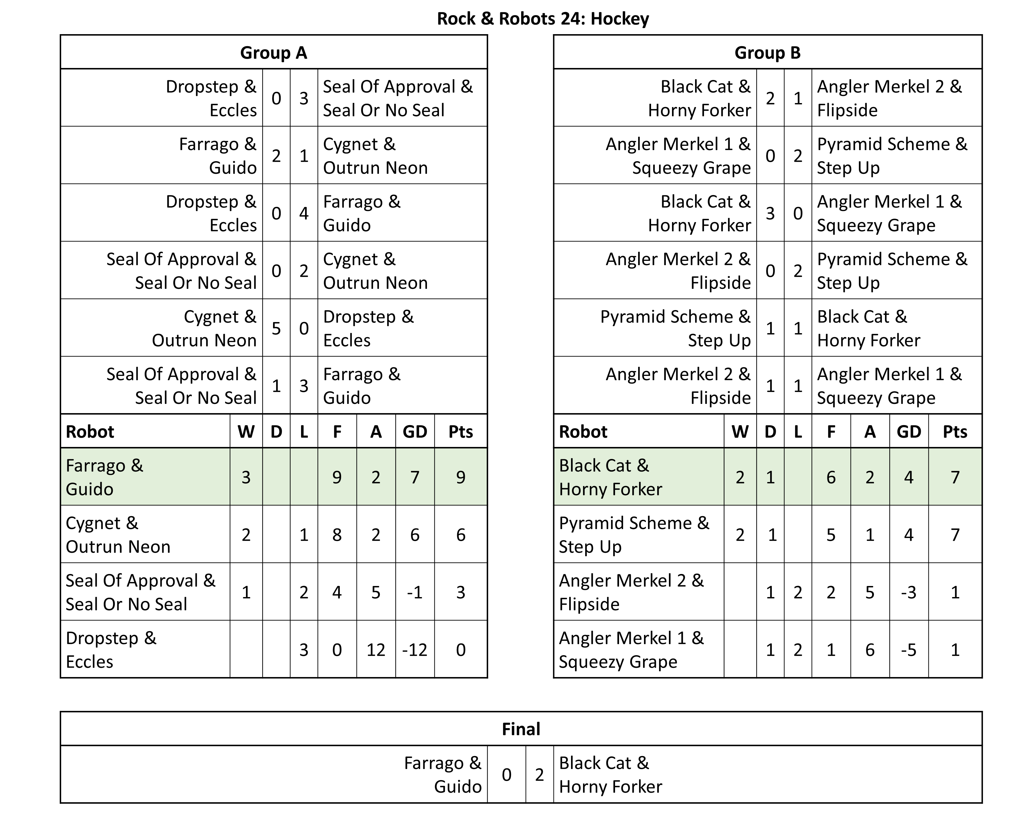 24 | Hockey | 12/10/2025 | Black Cat & Horny Forker Jim Frize & Luke Badgery | Farrago & Guido Phoenix Will & Vlad Baluta | video | |