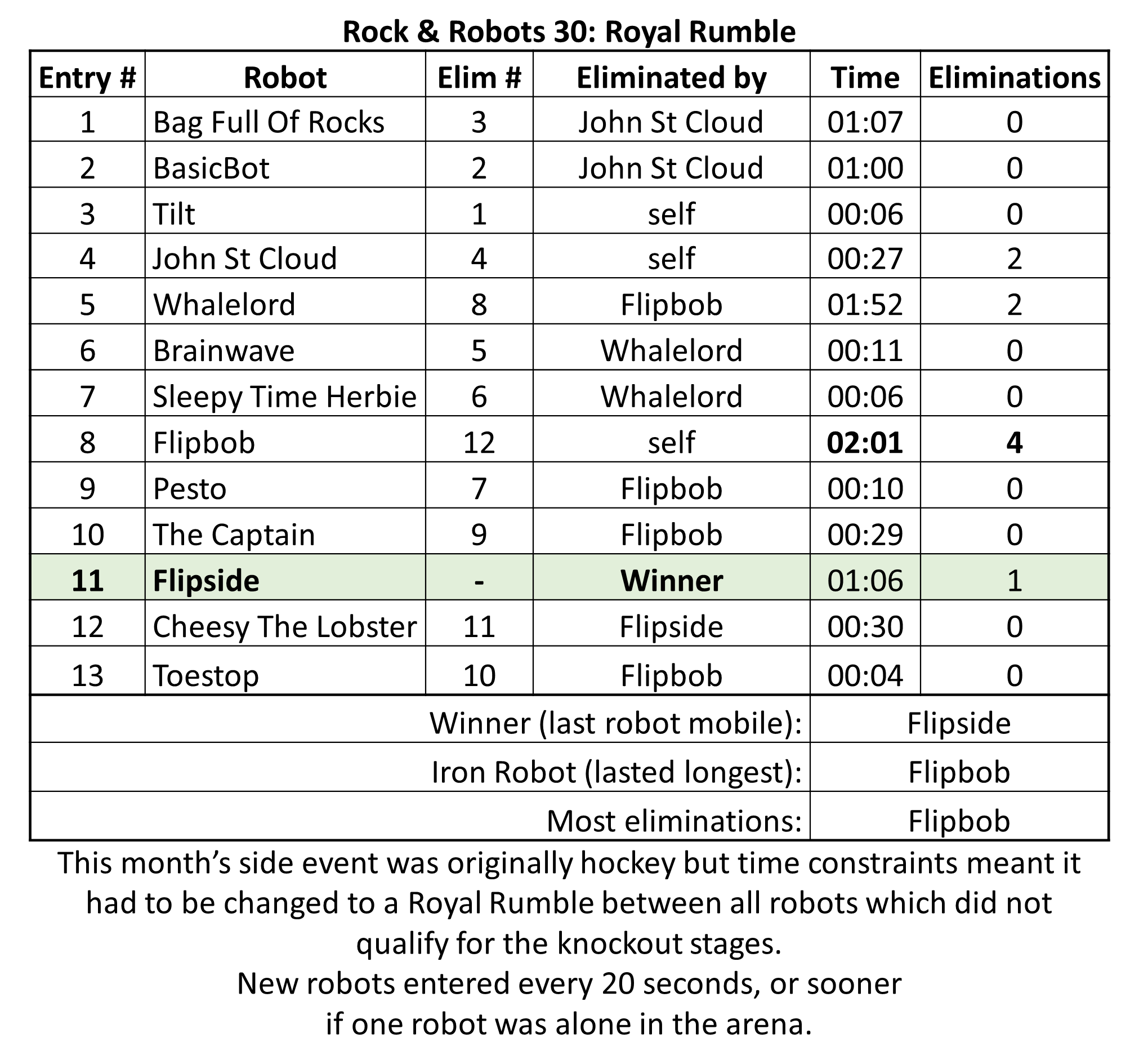 30 | Royal Rumble | 12/04/2026 | Flipside Theo Heapy | Iron Robot: Flipbob Dan Laybourn | Coming soon | |